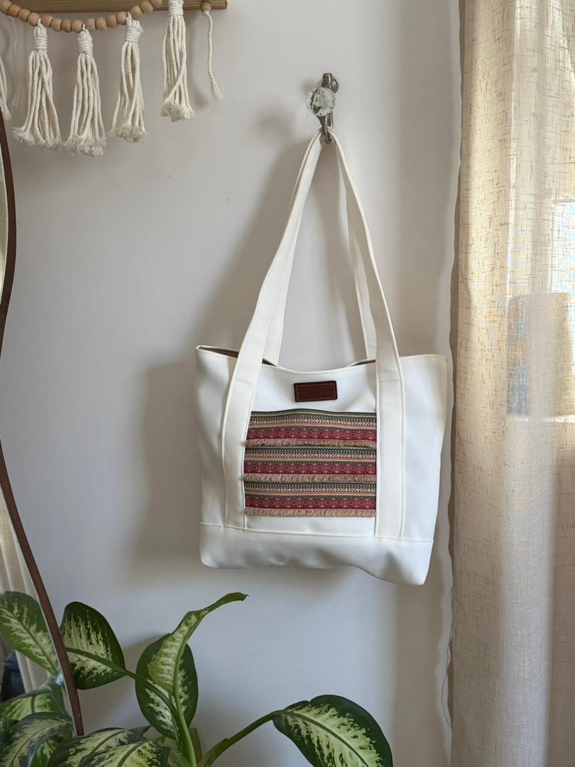 The handbag showcases unique geometric patterns inspired by contemporary art and nature, harmoniously blending modern aesthetics with the beauty of traditional craftsmanship. Its sturdy handles and generously sized interior make it perfectly suited for daily use—whether for work, shopping, or travel—while remaining lightweight and comfortable.